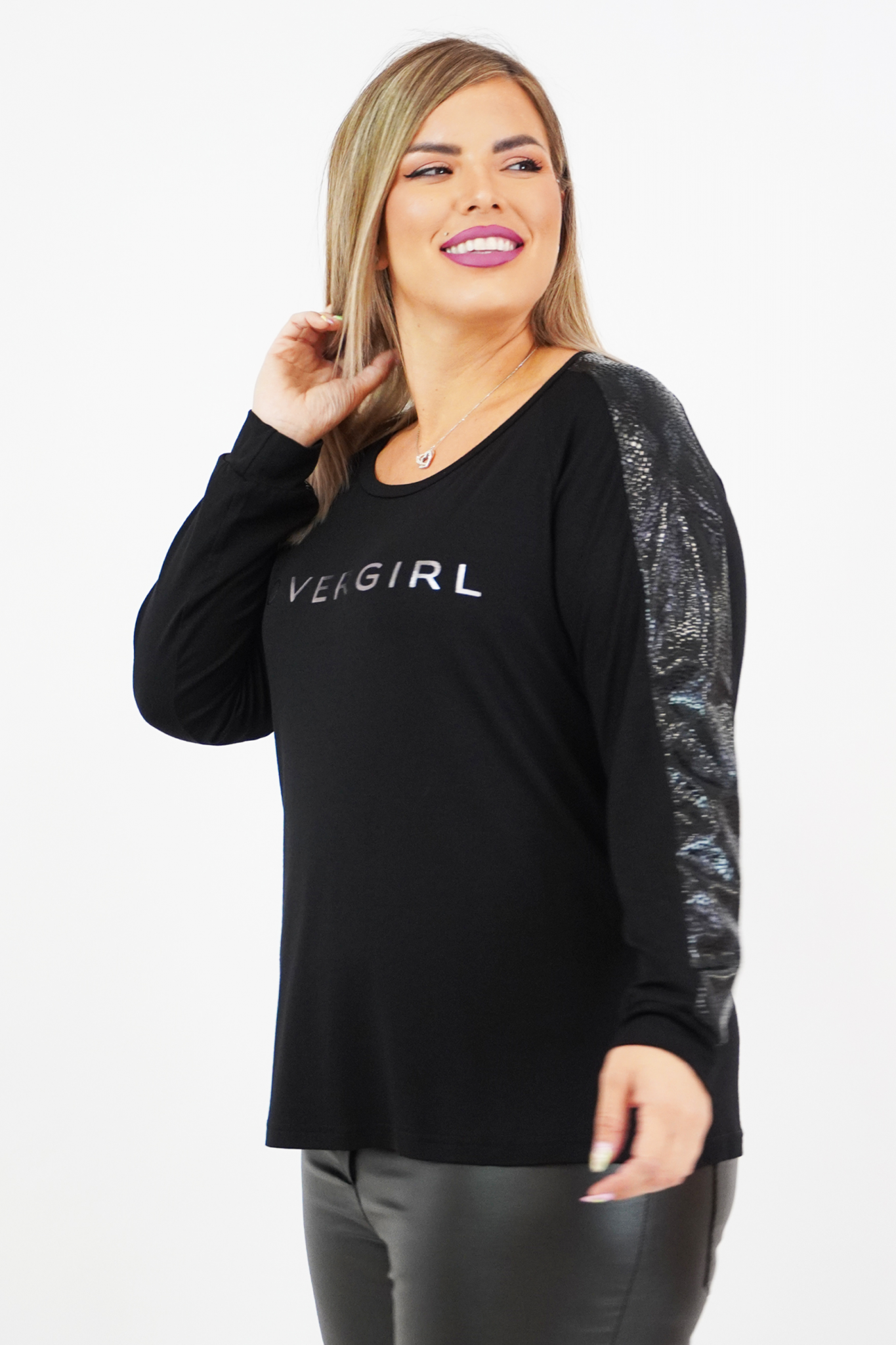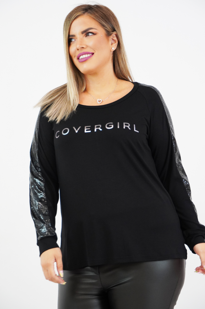 Μπλούζα Viscose, στρογγυλή λαιμόκοψη, ρεγκλάν μανίκι με φάσα κροκό φιδι, στάμπα εμπρός "COVERGIRL", σε ίσια άνετη.